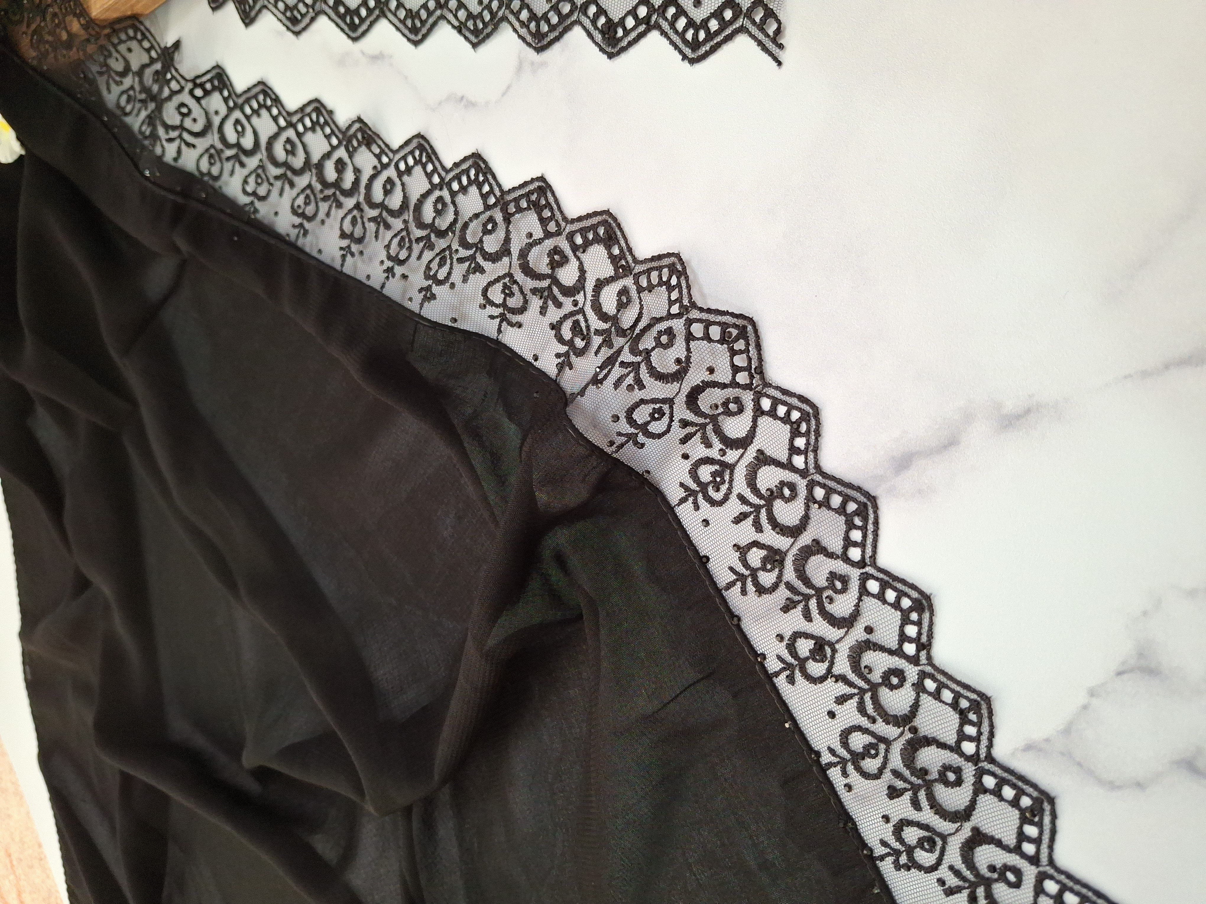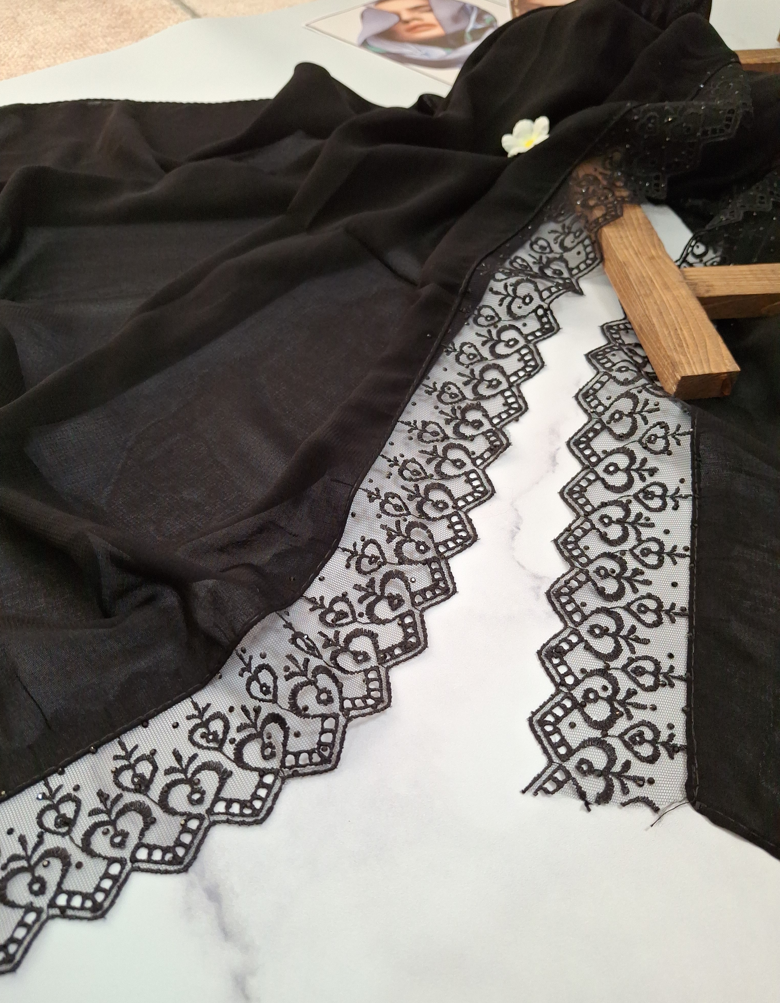 شال کرپ حریر لبه دانتل