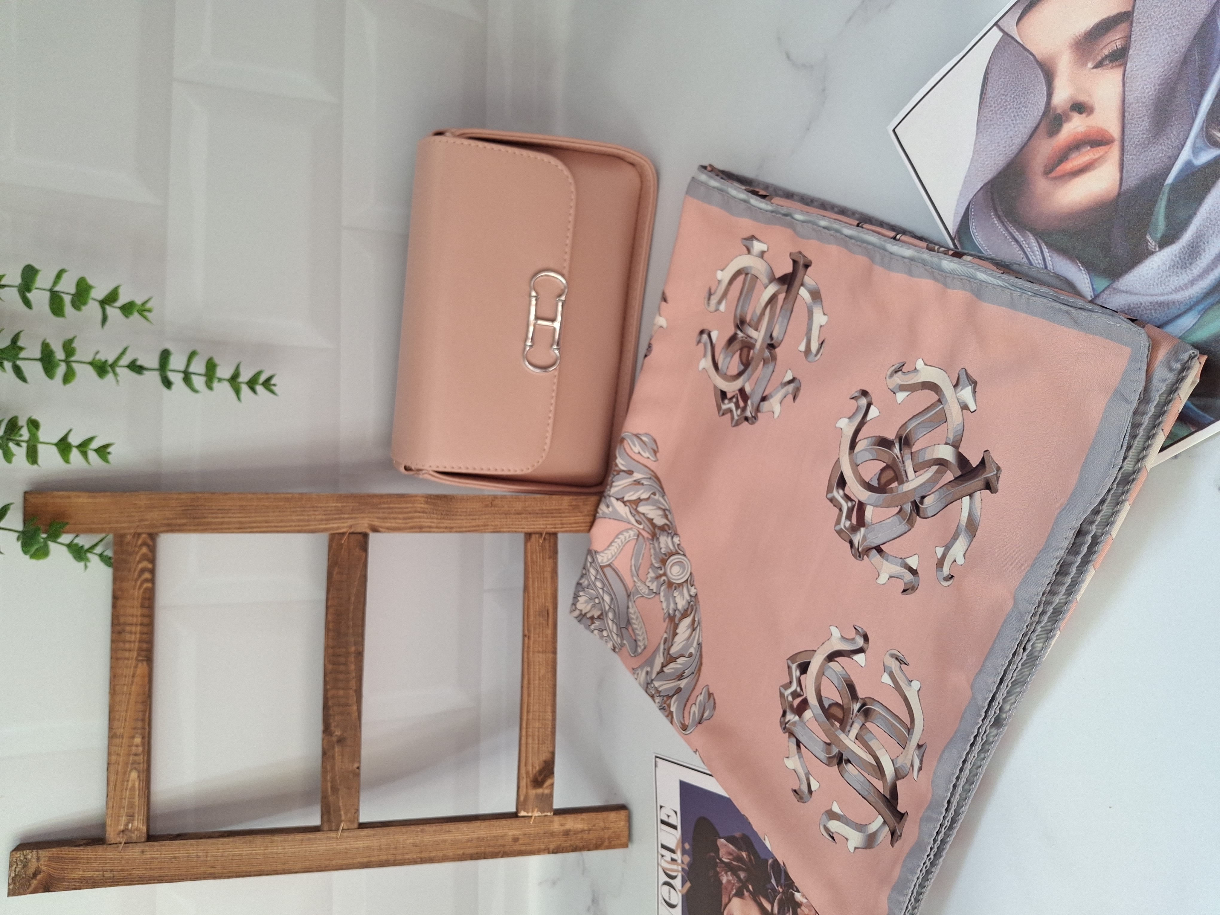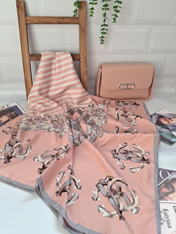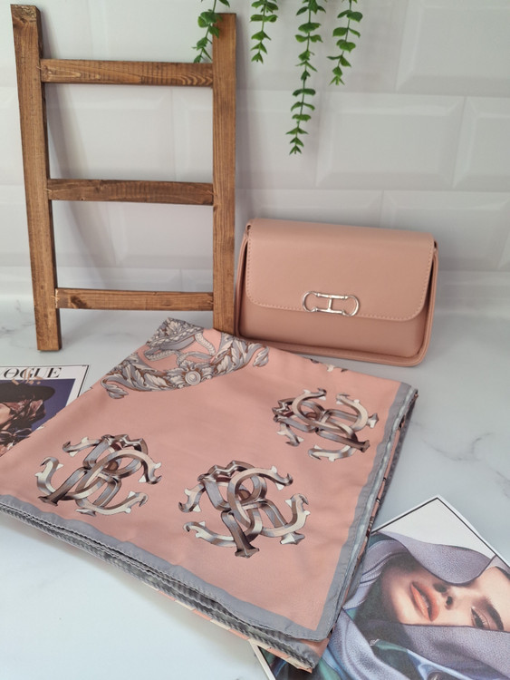 ست کیف و روسری گلبهی ، خوشرنگ و زیبا ، روسری قواره 140 ، کیف سایز 17 × 24 ، جنس روسری نخی چهار فصل ، جنس کیف چرم مصنوعى